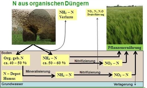 Leider neigt Stickstoffdünger dazu, in Grund- und Oberflächengewässer oder in die Luft ausgetragen zu werden, bevor er durch die Pflanzen aufgenommen werden kann. Neben verschiedenen Ausbringungstechniken werden unterschiedliche Zusätze verwendet, um den Stickstoff so lange wie möglich pflanzenverfügbar zu halten und somit Verluste zu vermeiden, z. B. Entec flüssig®, Piadin®, N-Lock®, Vizura® Nötig sind je nach Bodengüte und Einsatztermin etwa 3 bis 8 l je Hektar Aufwand, abhängig auch von Bodenerwärmung und Kulturpflanze, etwa beim Einsatz in Mais. Aber immer unabhängig von der ausgebrachten Menge Stickstoff. SaveN® geht einen anderen Weg. Die Aufwandsmenge hängt immer von der Menge Stickstoff ab, die ausgebracht werden soll. SaveN® ist eine Mischung aus 3,46 kg Schwefel, 1,56 kg Stickstoff und 4 gr Zink in einer komplexen Verbindung je 10 Liter. Es hat sich in der Praxis gezeigt, dass ein Verhältnis von ca. 9/10 Teilen Stickstoff zu einem Teil Schwefel am besten zur Stabilisierung der Gülle beiträgt. Beispiel: Ihre Gülle enthält 4 kg Stickstoff je Kubikmeter. Sie möchten 120kg N/ha mit Gülle düngen. Also 30 m³ pro Hektar. 120 kg Stickstoff benötigen 12,63 kg Schwefel (9,5 zu 1) 12,63 kg Schwefel entsprechen 36,5 Liter SaveN® für 30 m³ Gülle. Oder grob über den Daumen 0,3 Liter SaveN pro kg Stickstoff = 120 kg/n x 0,3 = 36 Liter. Neben dem Schutz des Stickstoffs, bringen Sie bei 36 Liter SaveN® somit 12,42kg S und 5,62kg N je Hektar zusätzlich aus. Was bewirkt SaveN®? SaveN® hat einen pH-Wert von etwa 8. Es führt im Boden aber zu einer zeitweisen Absenkung des PH-Wert, was Mikronährstoffe freisetzt und die Umsetzung von Ammonium in Nitrat verlangsamt und somit die Nitratverlagerung und die Emission klimarelevanter Gase reduziert bis der Boden wieder ins Gleichgewicht pendelt. SaveN® aktiviert Mikroorganismen im Boden SaveN® führt zu einer höheren Krümeligkeit im Boden SaveN® kann den Geruch der Gülle reduzieren SaveN® kann die Schwimmdecke in der Güllegrube reduzieren SaveN® trägt zur Nährstoffaufnahme (Fe, Mn, Zn, Se, Cu, B, K2o, Ca, Mo) bei. SaveN® ist frei von Triazole. Es tötet keine Bakterien oder zerstört Enzyme. Es verlangsamt indirekt die Aktivität von Enzymen. SaveN® wird von der Pflanze vollständig als Nährstoff aufgenommen. Darüber hinaus vermuten wir, dass die zusätzliche Zinkkomplexverbindung die Saat im Boden schützt und das zusätzlich im Boden gelöste Zink die Pflanze bei der Photosynthese unterstützt sowie bei zu starker Sonneneinstrahlung wie ein Sonnenschirm wirkt. |